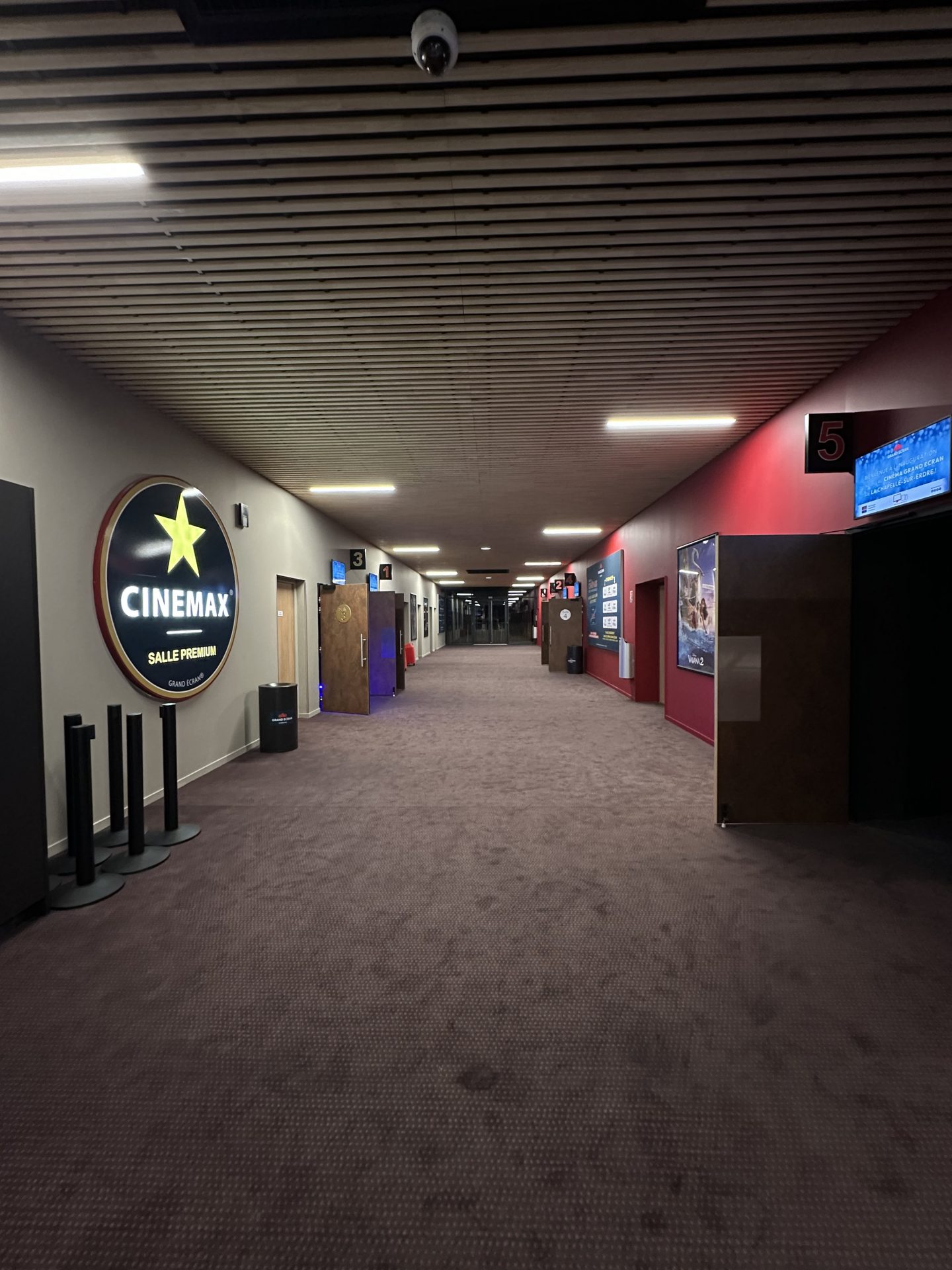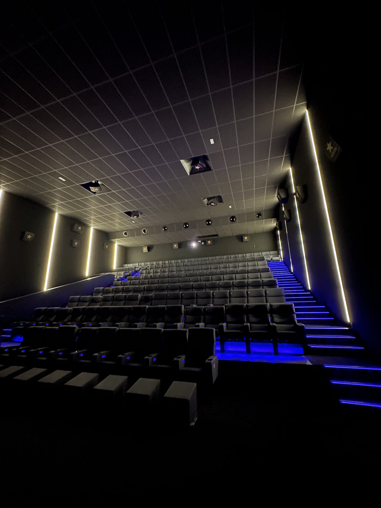 Des salles de différentes tailles dont une Prémium Cinémax dans laquelle on retrouve un son immersif Dolby Atmos avec renforts de basses muraux et haut-parleurs au plafond, une projection 4K Laser et des fauteuils en cuir électriques, inclinables, avec des ports USB sur chaque place.